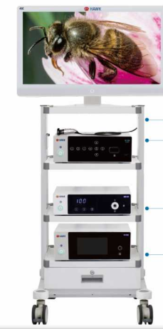 这是一款集成化医疗显示系统,配备32英寸4K手术监视器,搭载4K超高清摄像头。内置图像控制系统支持七种内窥镜智能优化及实时录像拍照;LED冷光源具备长寿命与智能调光