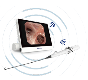 高度符合ICU内窥镜诊疗的利器,无线信号传输功能内窥镜 可配备5英寸便携屏, 操作便捷,轻松快速 完成插管操作 小外径大通道