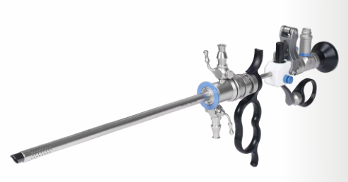 -相较传统电切镜,更细,口径更小,腔道对外鞘出 水孔隙的包裹更加松弛,水循环好。